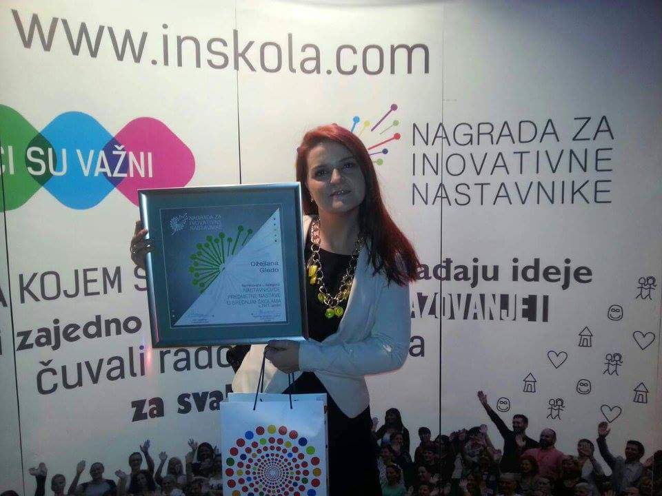 COI Step by Step je uz podršku donatora i prijatelja pokrenuo inicijativu za dodjelu godišnje nagrade za inovativne odgajatelje i odgajateljice, nastavnike i nastavnice i stručne saradnike i saradnice u predškolskom, osnovnom i srednjem obrazovanju. Ova nagrada je jedna u nizu aktivnosti osmišljenih sa ciljem promovisanja važnosti nastavničke profesije, i njihove nemjerljive uloge u razvoju društva i svih drugih profesija. Profesorica engleskog jezika i književnosti Đejlana Gledo je za inovativnu praksu kojom je aplicirala dobila priznanje i prigodan poklon, a plasirala se među 10 nainovativnijih profesora u srednjim školama u BiH.