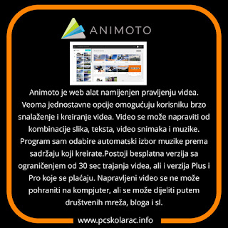 Naša kolegica Rasema Delić (OŠ “Harmani II -Bihać) predložila nam je digitalni alat za izradu videa Animoto.